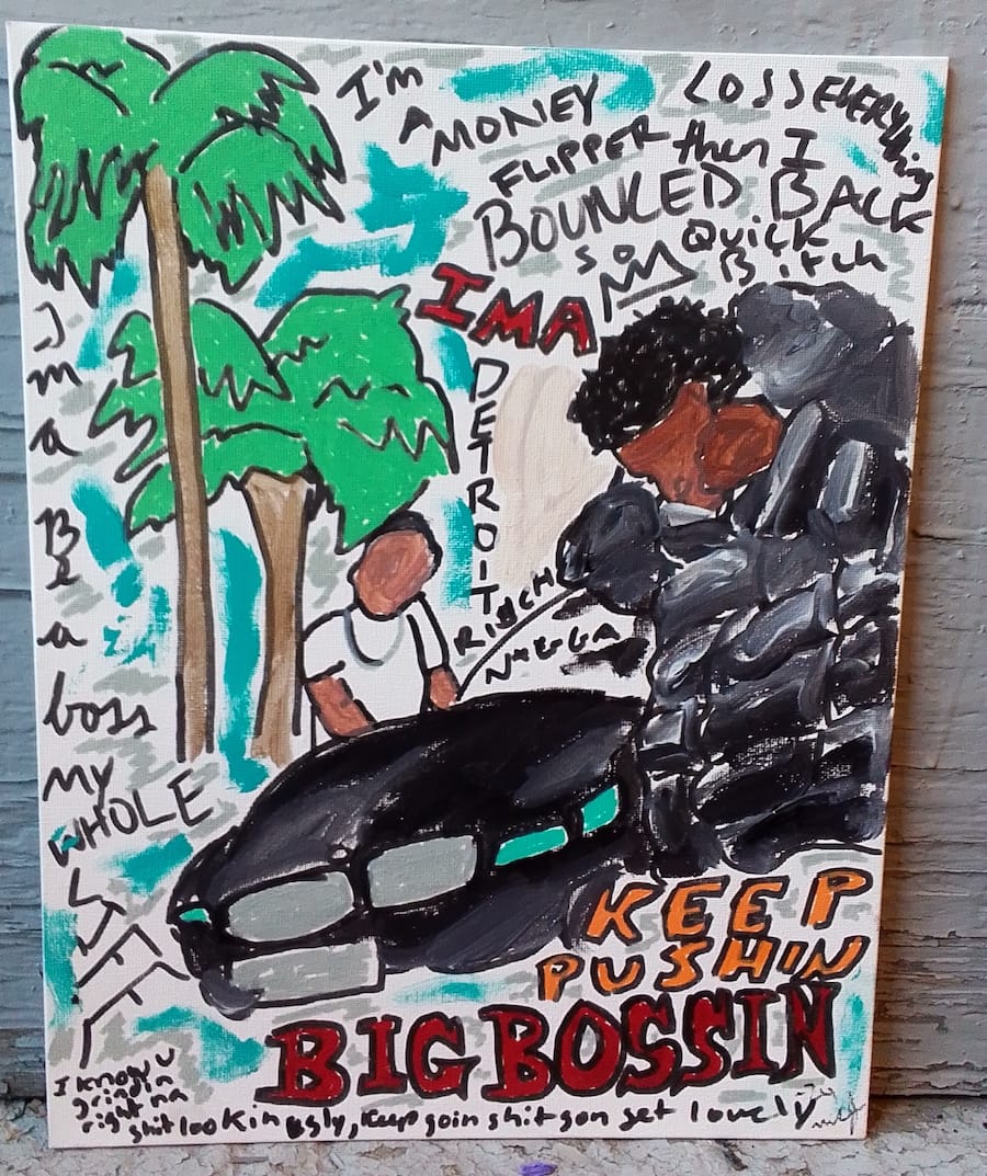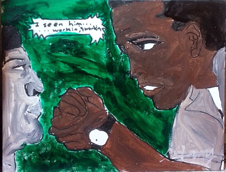 A fifty dollar donation gets you any 11"x14" artwork of your choosing. I recently lost all my life's work and belongings in a house fire on May 9, then I persevered and did the Black Boy Expo and a Community Art Show the following month, creating new works.