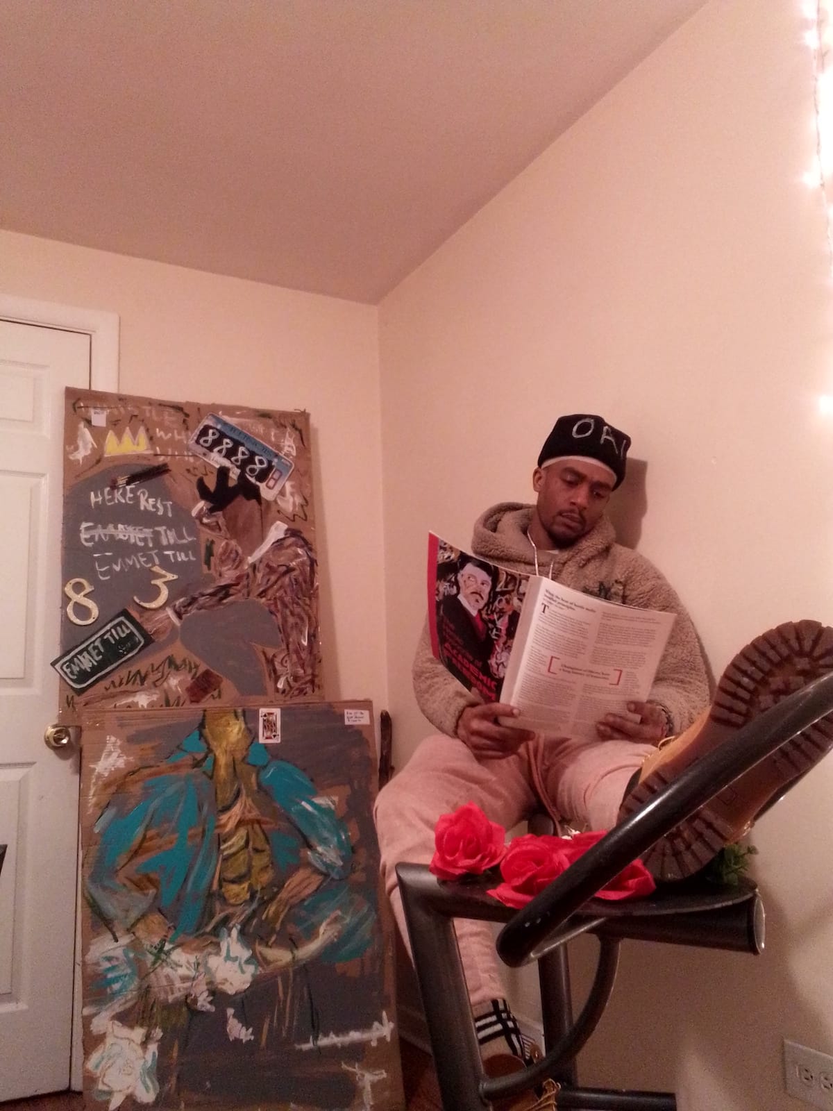 Both the painting and picture say, "He is a gutsy artist and is trying to rebuild himself in more ways then one on and off the canvas....and I feel for him this young man and I'm happy for him in this moment....Showing him the respect he deserves.....they know what this means for him and what he has lost and now trying to find...what a great moment for him and all he's been thru....you see the emotion on his face...."