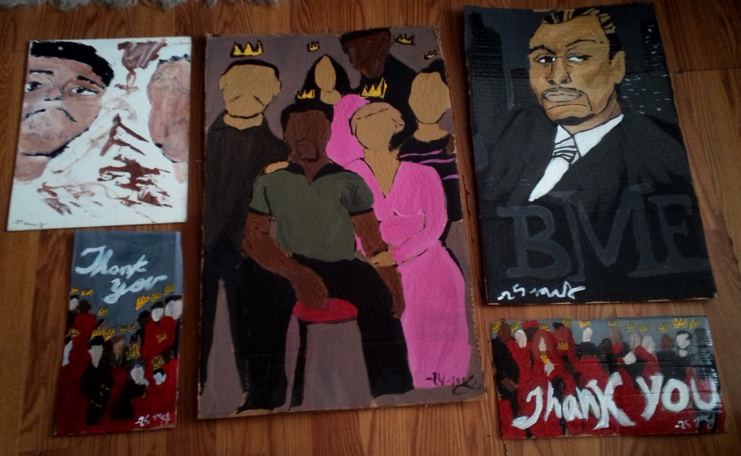I painted Big Meech and his son as one of the first pieces I did after the fire to conquer my mindset of losing it all. I learnt of the times Big Meech lost it all, and painted his son because I wanted to see what was still possible for me. (His son plays him in the biopic show, by the way.) That piece ended up selling in Hyde Park, although it was originally going to be gifted to him.