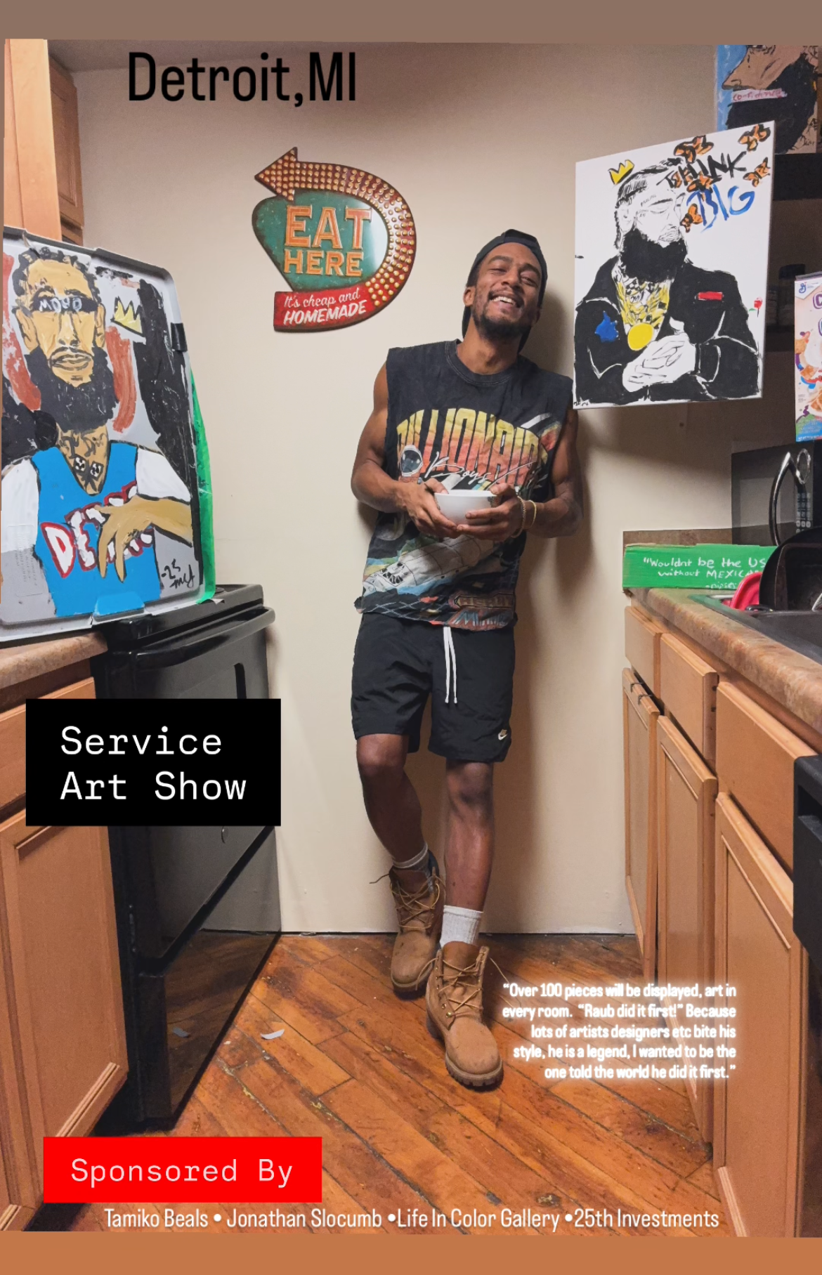 “Service” Art Show was held February 12th and 13th, (sponsored by Tamiko Beals, Jonathan Slocumb, 25th Investments, Life In Color Art Gallery, & Mr.&Mrs.Jolliff) honoring celebrating and thanking all the wonderful people who have contributed to Courtney Jolliff, in any capacity, during his homeless journey. “I believe the people who gifted me food, sleeping bags, tents, couches, showers, tips, commissions, donations, etc are truly art. To help a community member in need, to experience it, to understand it, that’s art. My hopes are to share the blessings from each sale with the very subjects of the art, the people.” - Courtney Jolliff’s response to being asked what was the show title and why.